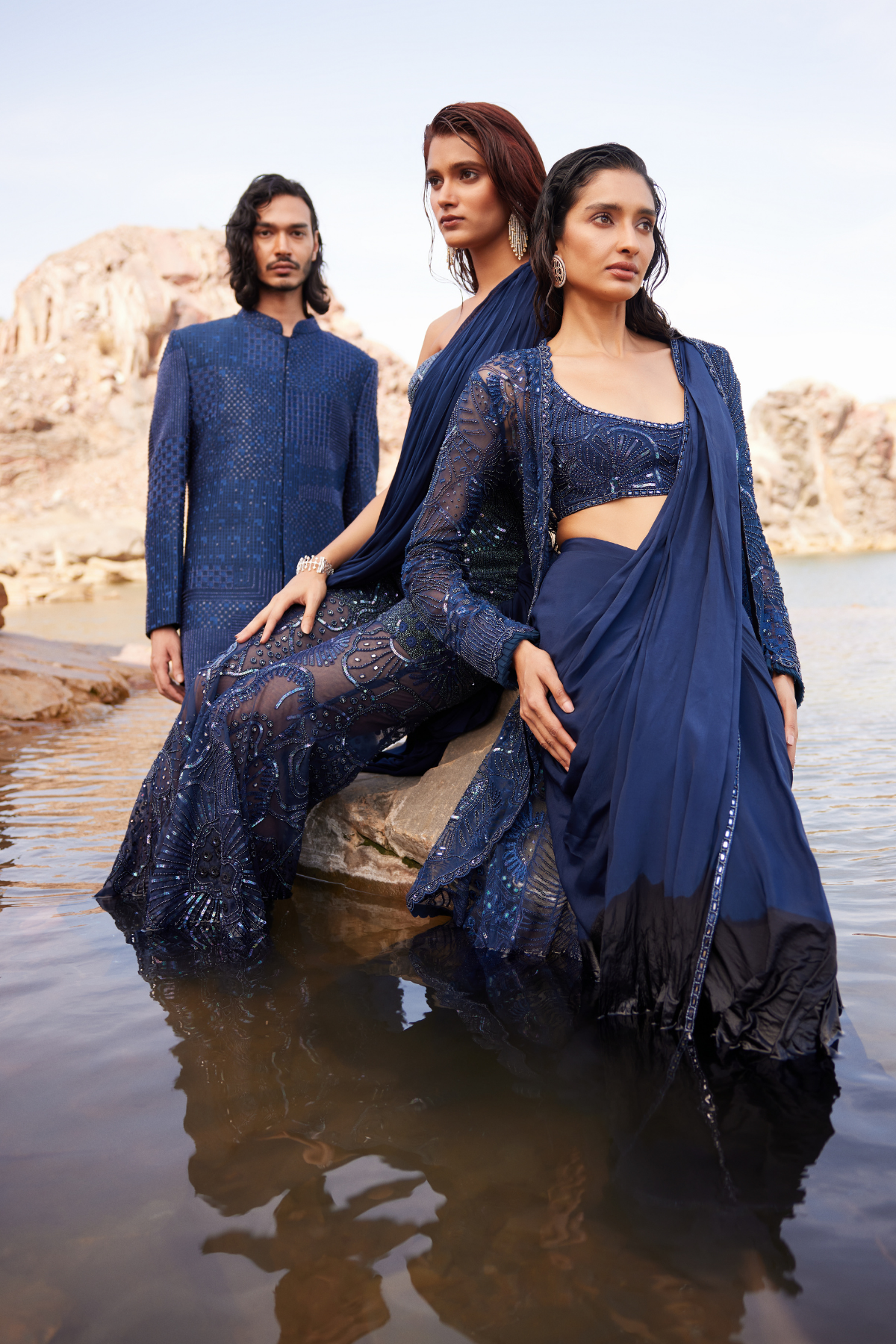 SEA CORAL SAMANTHA JACKET WITH PLAIN PRE-DRAPED SARI
