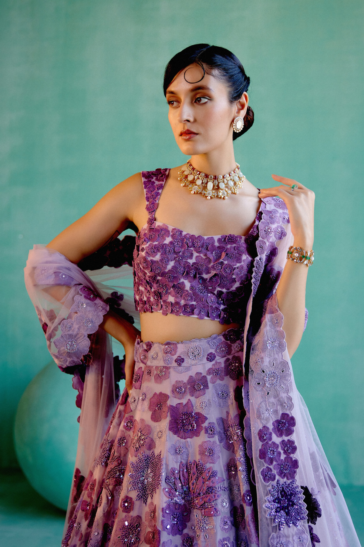 Shades of purple floral bunches lehanga setÂ