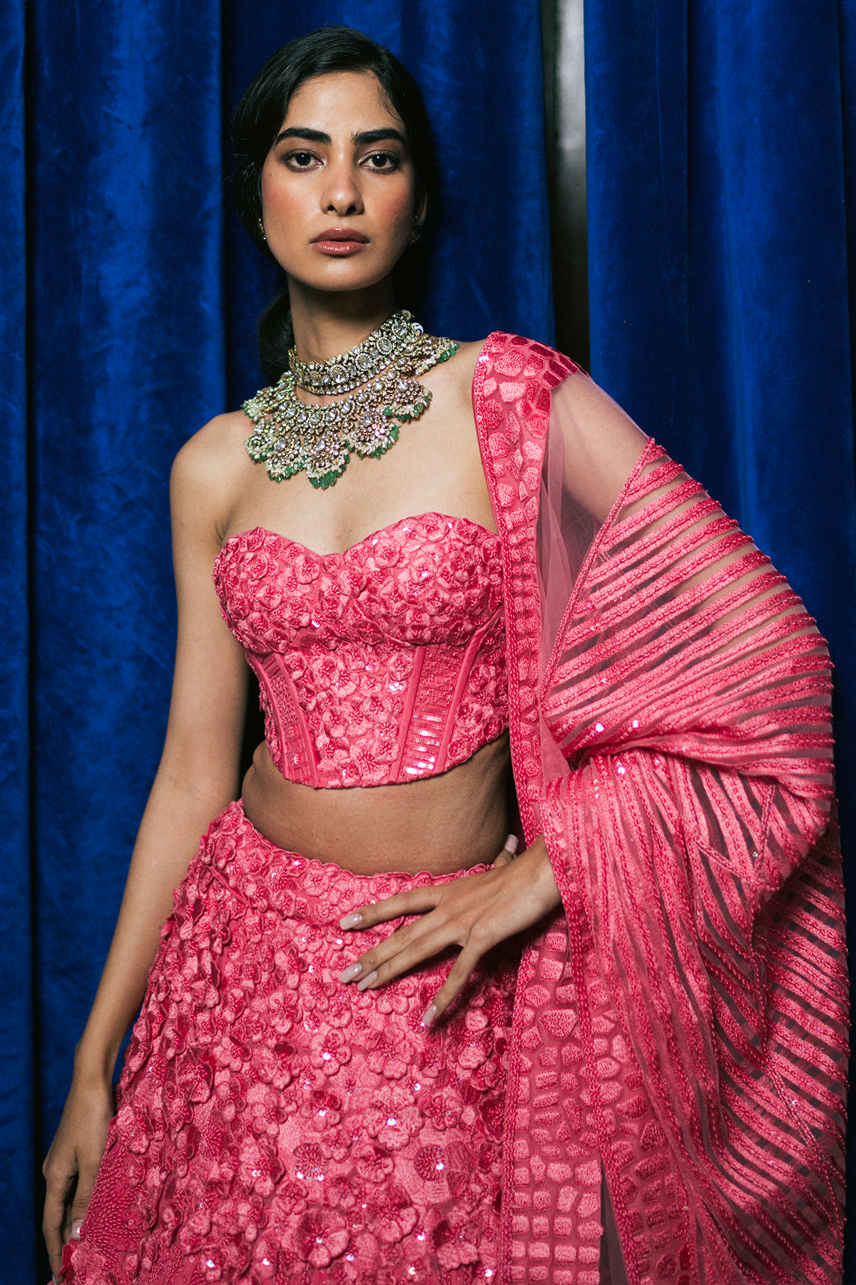 Decadent Varsha lehanga with corset blouse and Tulle art deco dupatta