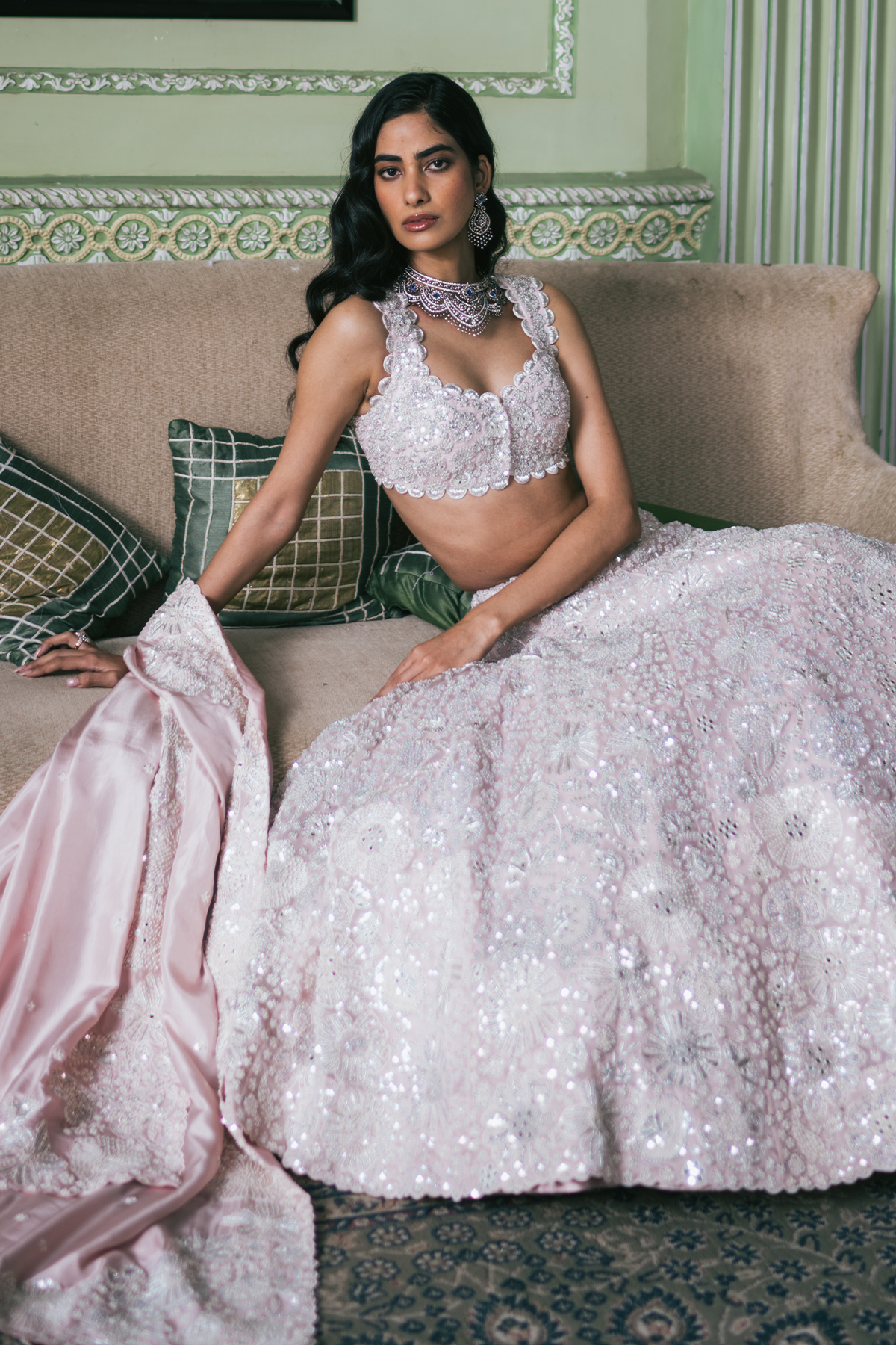 - Material/Fabric -Dupatta: Silk , Lehenga: Organza , Blouse: Tulle