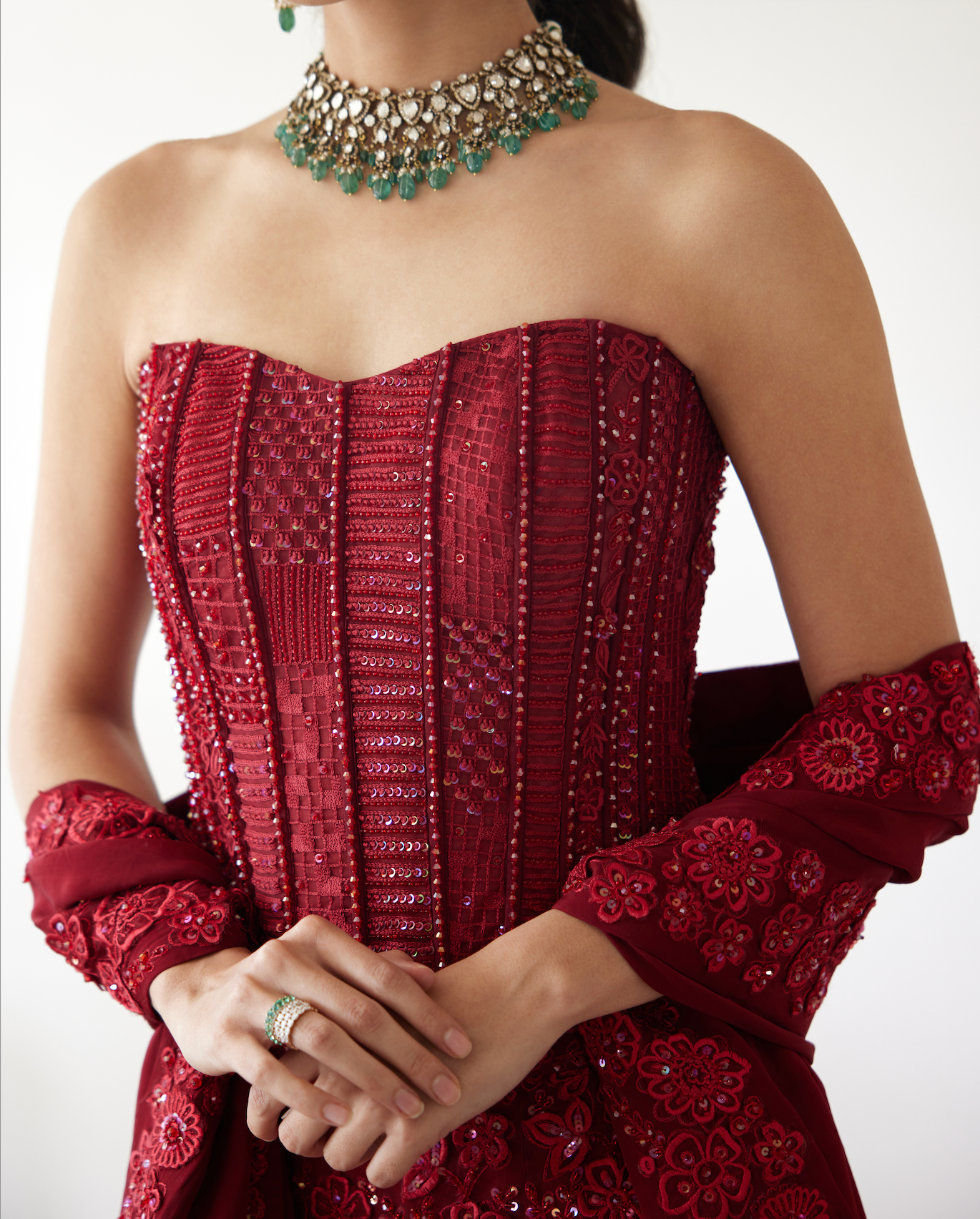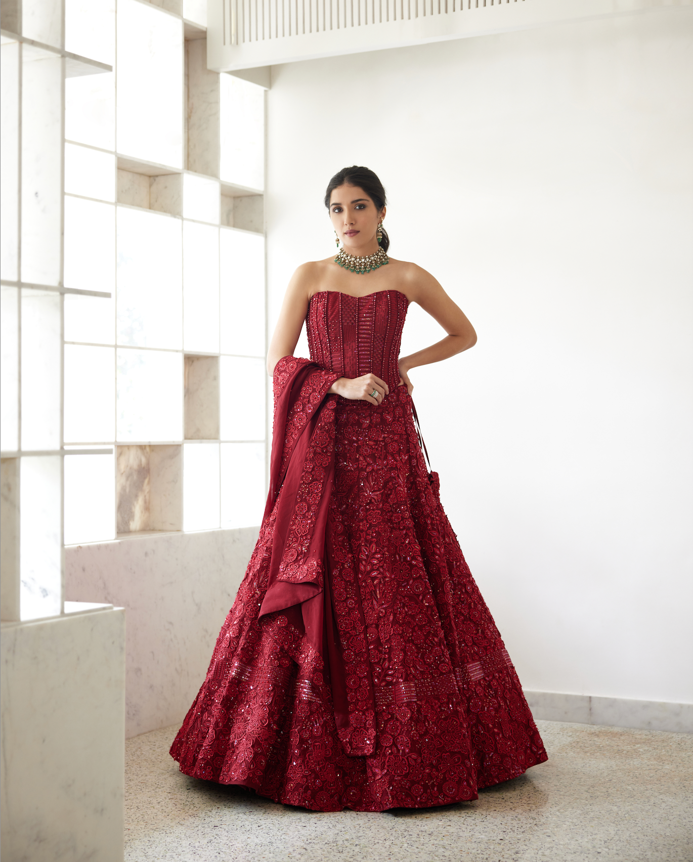 - Lehanga and Dupatta - Organza; Blouse - Tulle