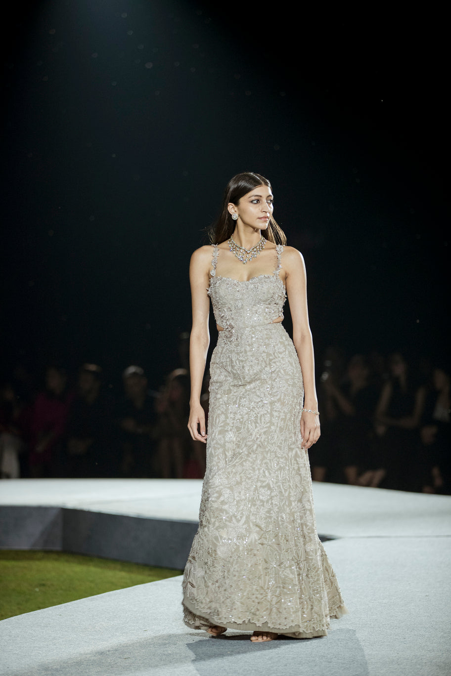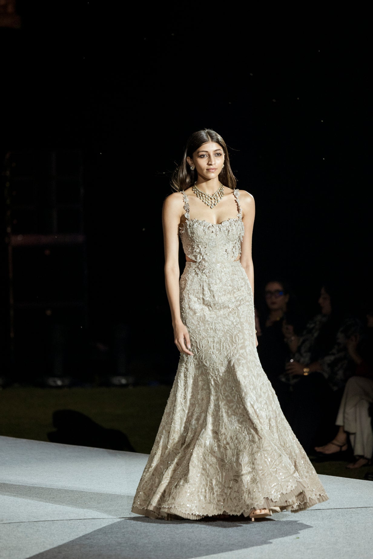TONAL GRADIENT WILDFLOWER COLD-CUT GOWN