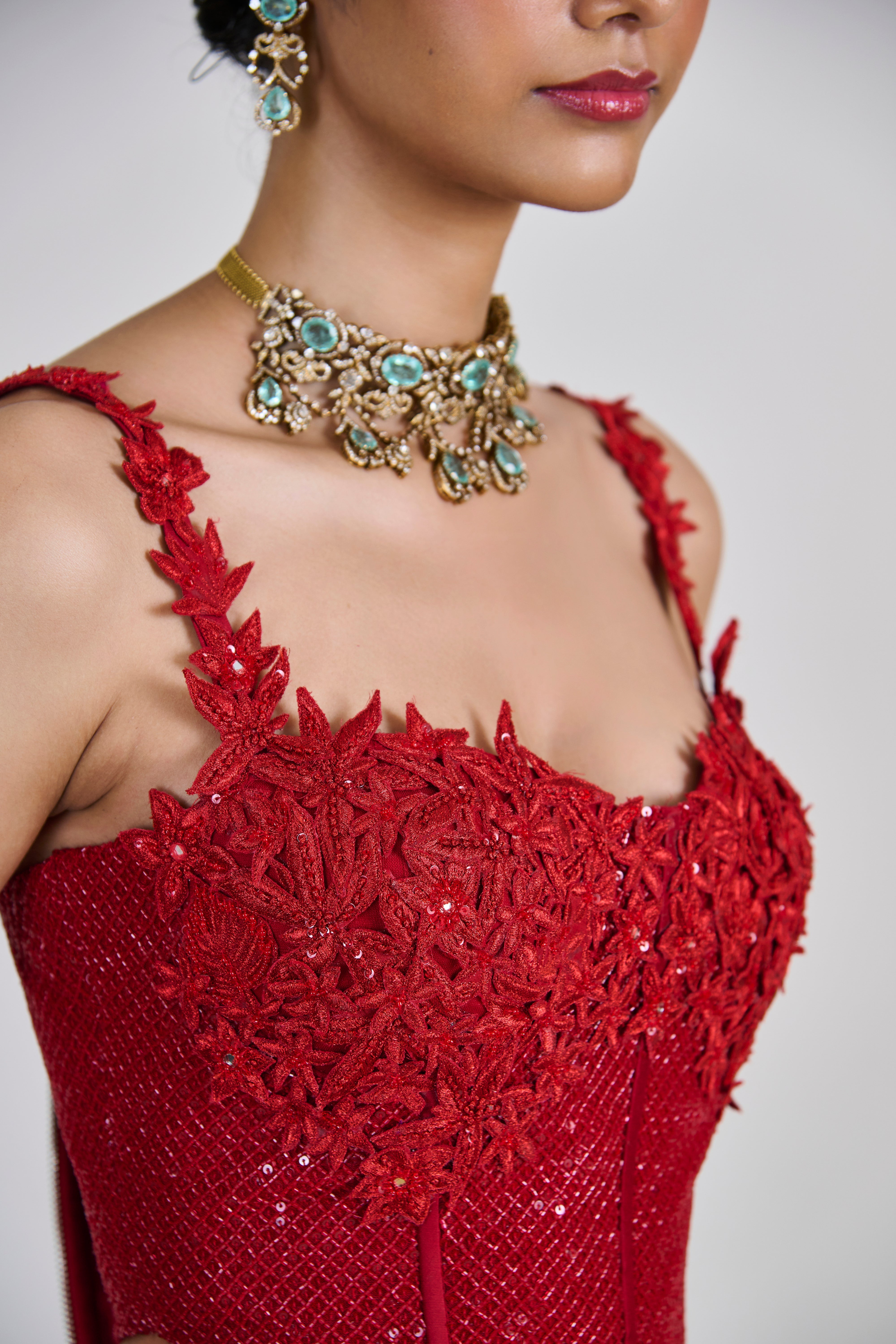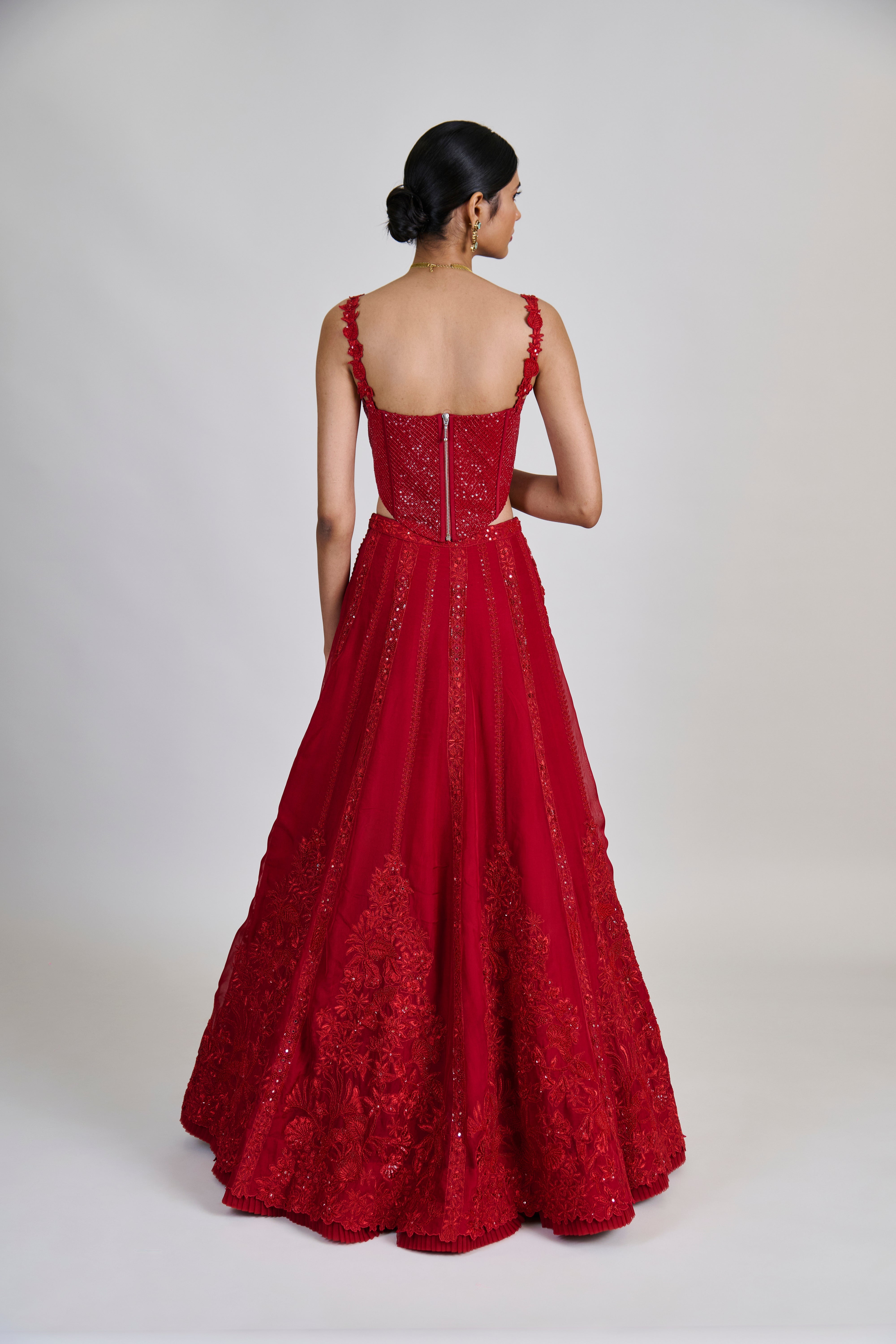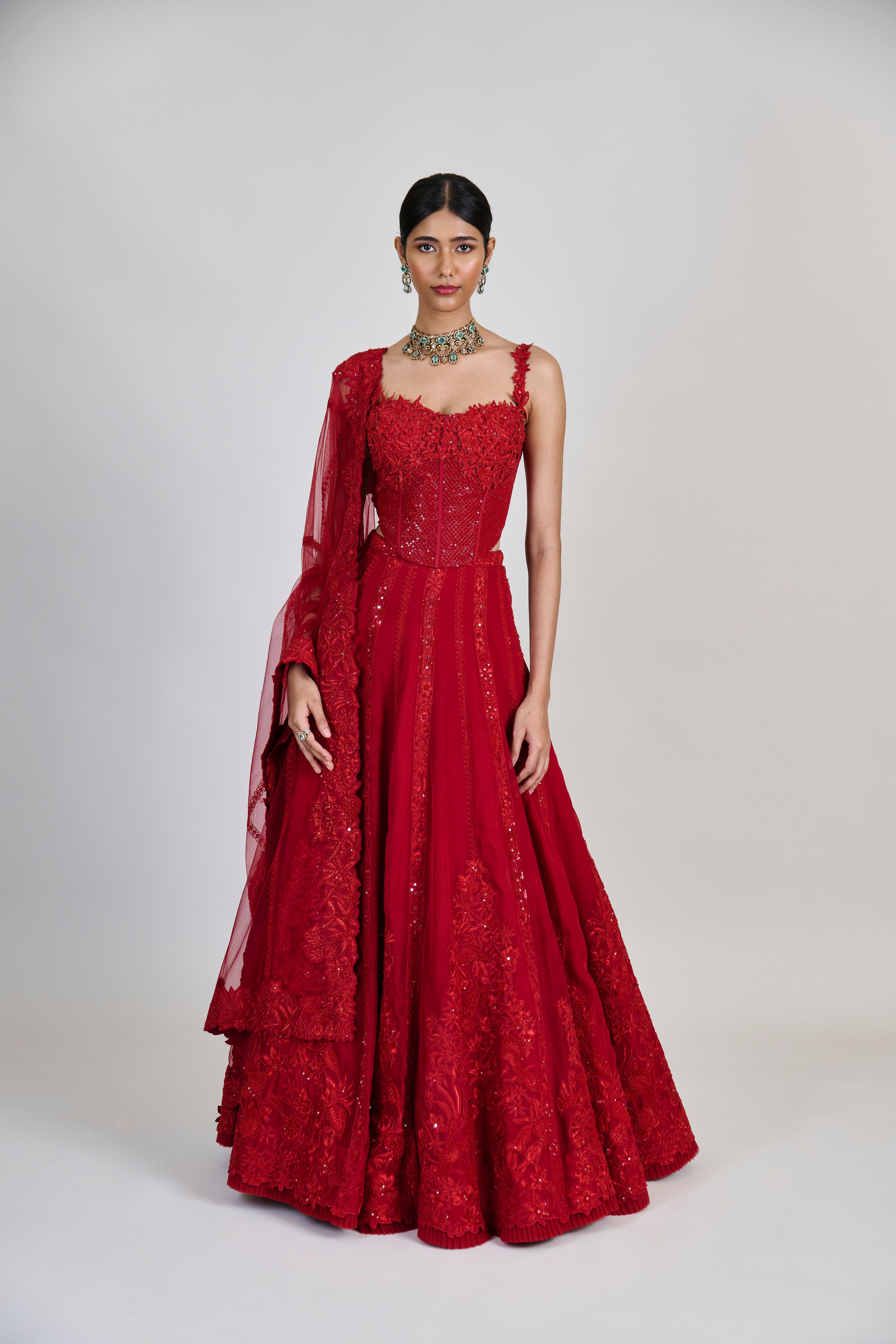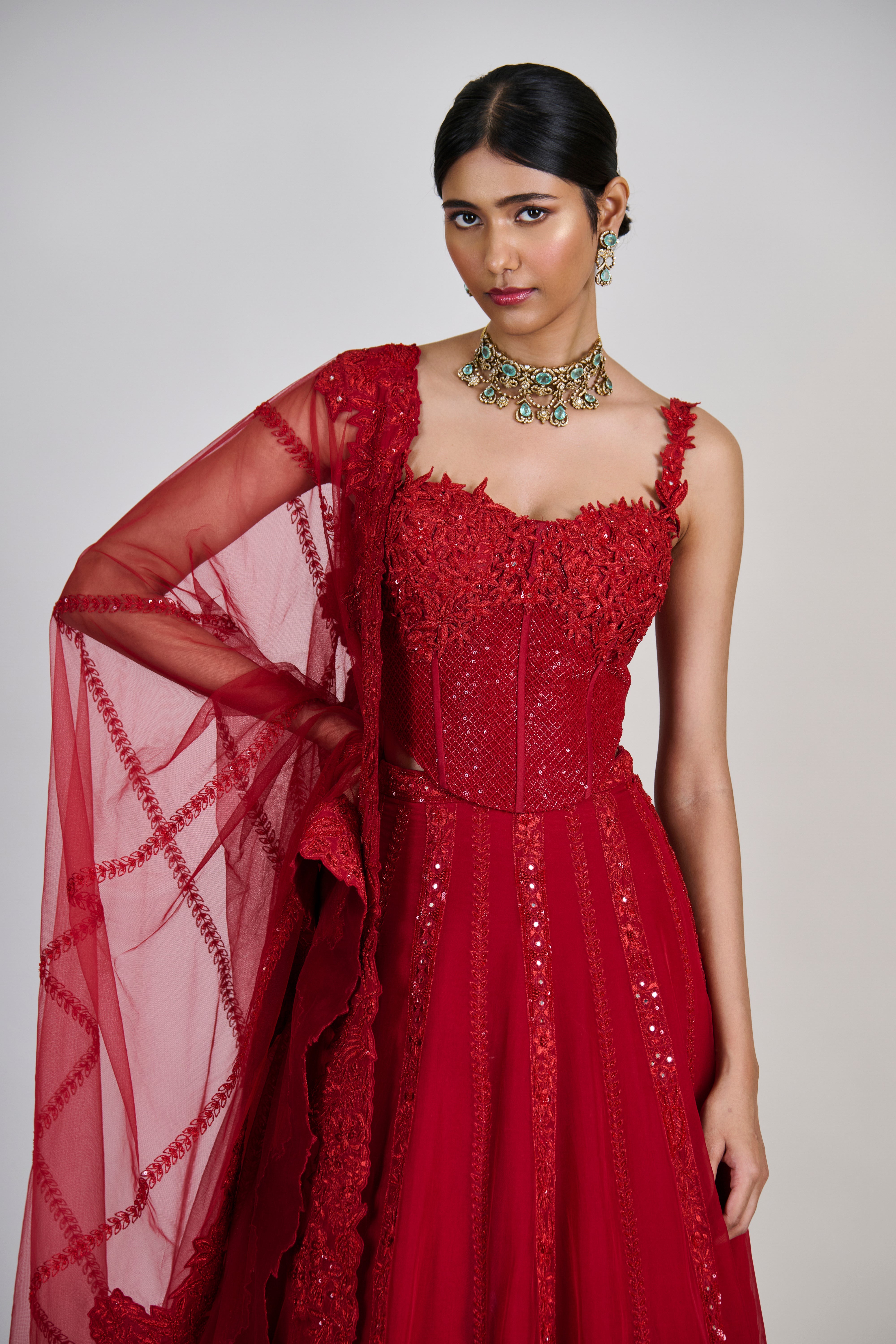 - Material/Fabric : Lehenga - Organza, Corset and Dupatta - Tulle