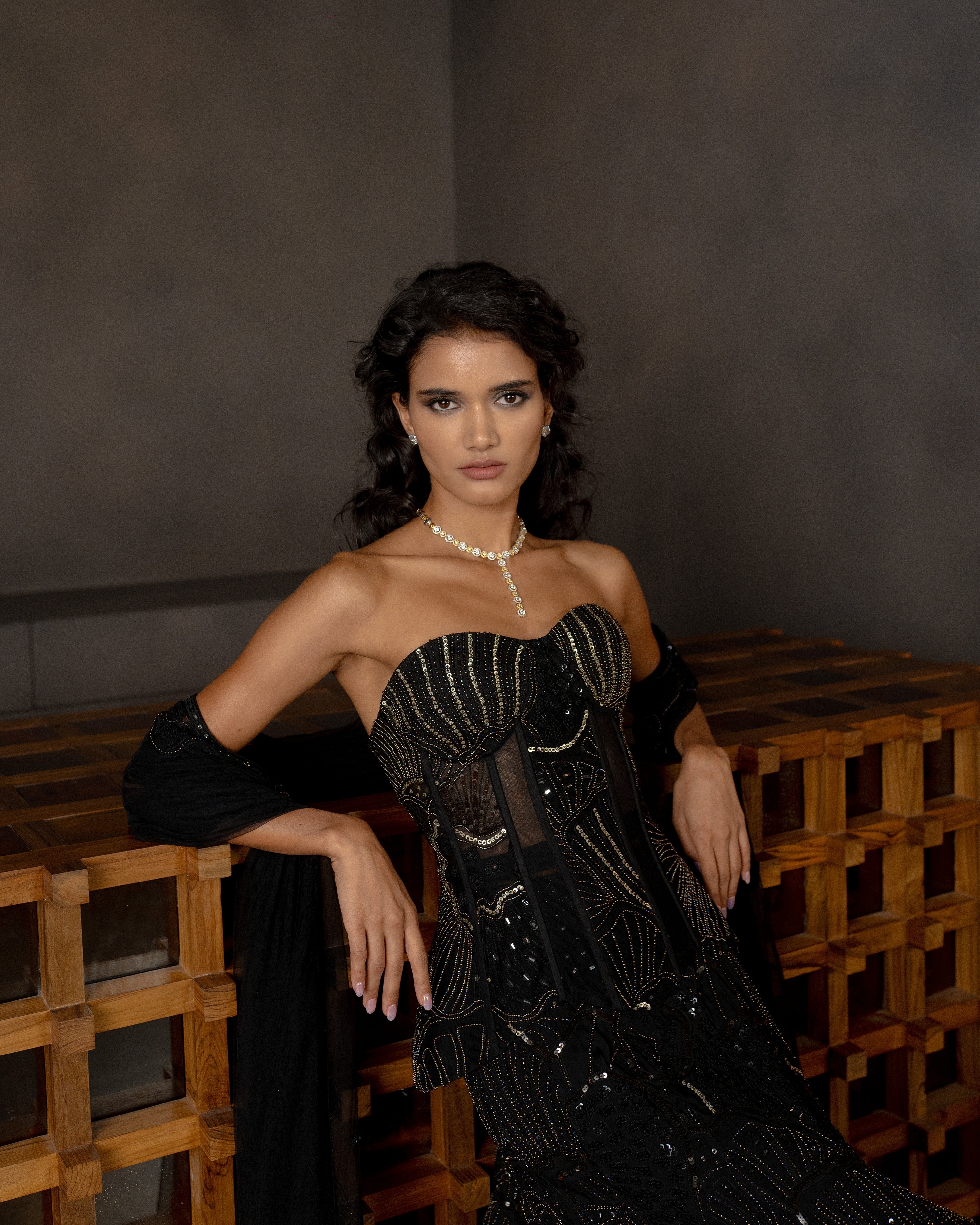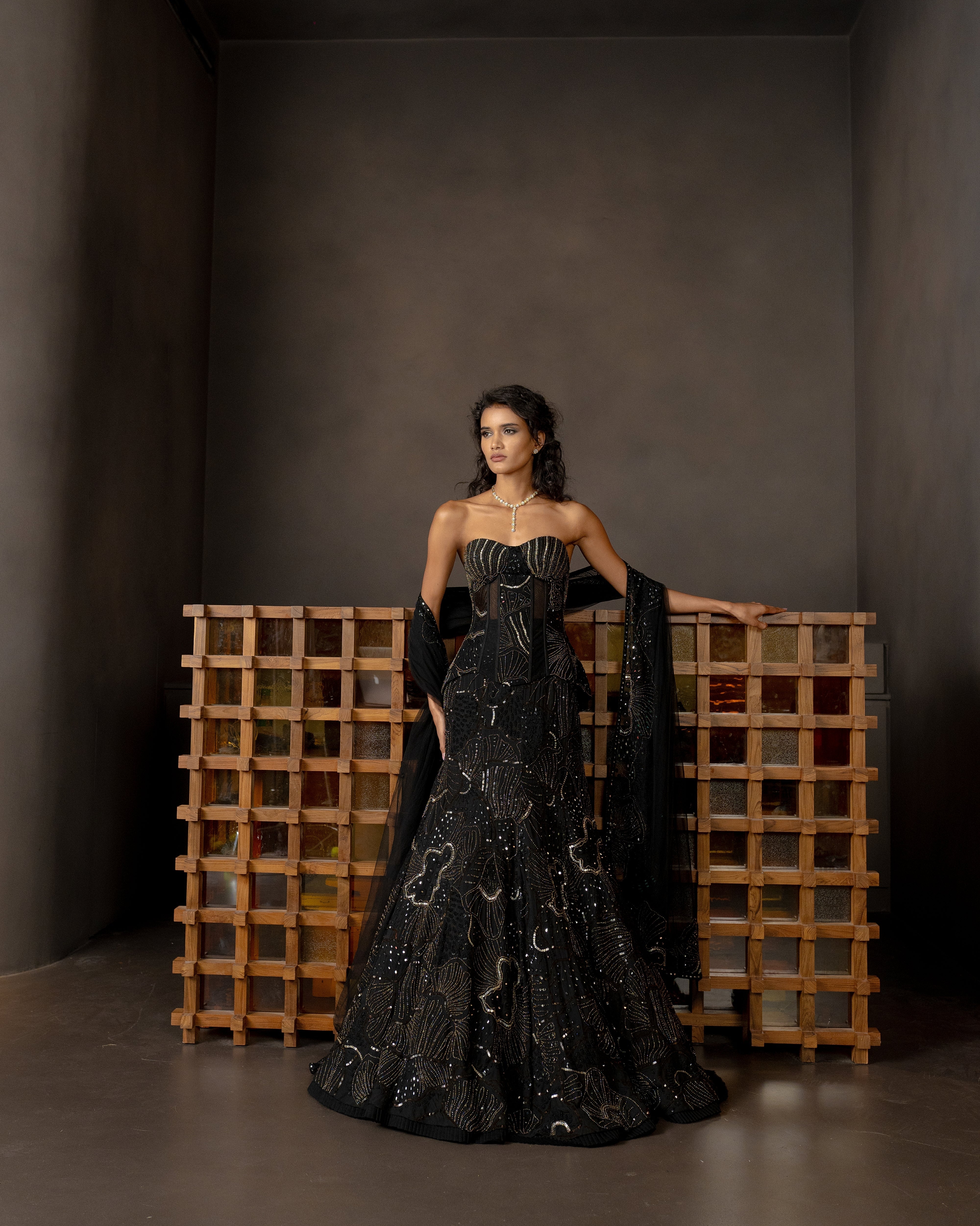Sea coral embroidered Corset, Fish cut skirt and Dupatta