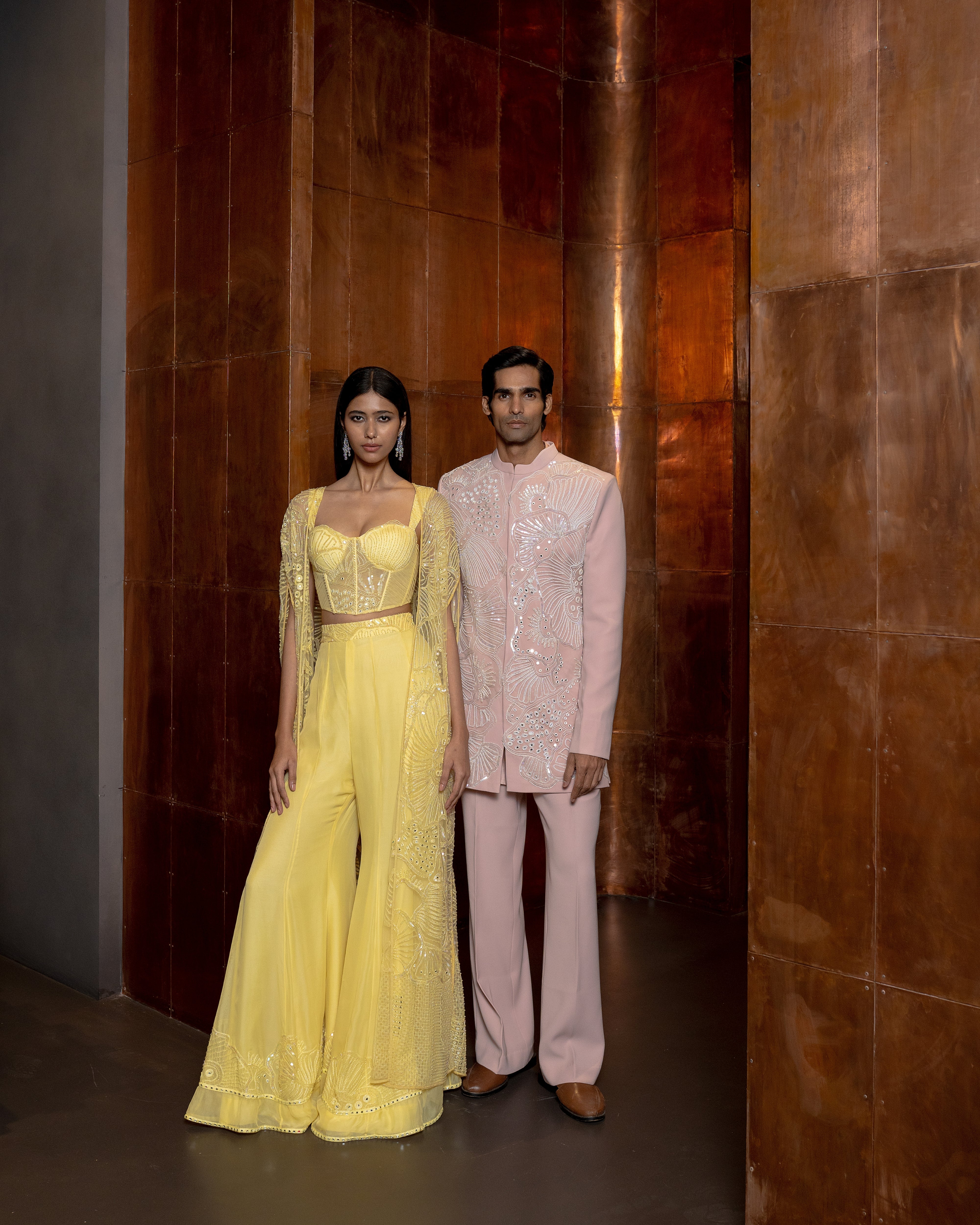 Sea coral embroidered Bandhgala with Plain Shirt and Parallel Pants
