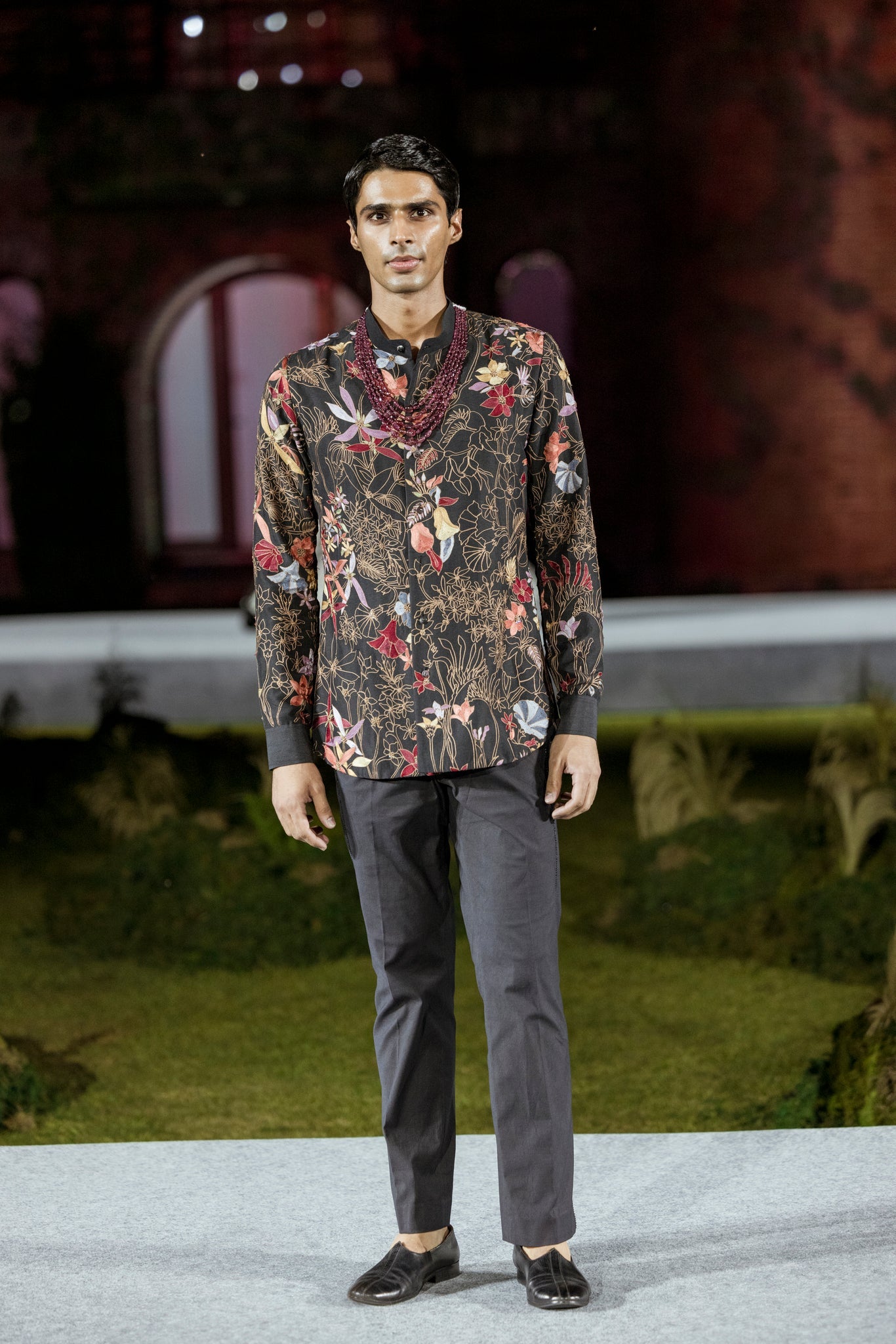 MULTI-COLOR WILDFLOWERS EMBROIDERYÂ SHIRT AND STRAIGHT PANTS