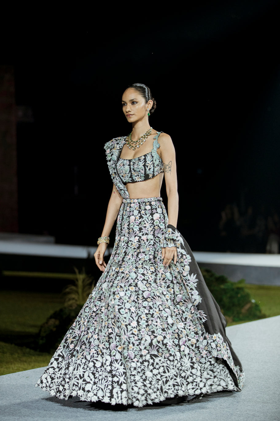 MULTICOLOR WILDFLOWER LEHENGA PAIRED WITH A CORSET AND DUPATTA