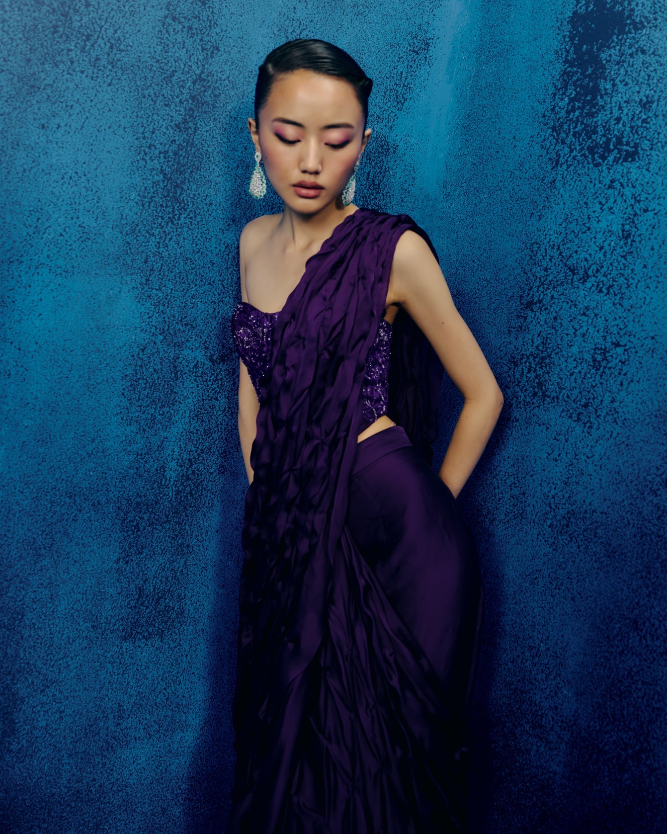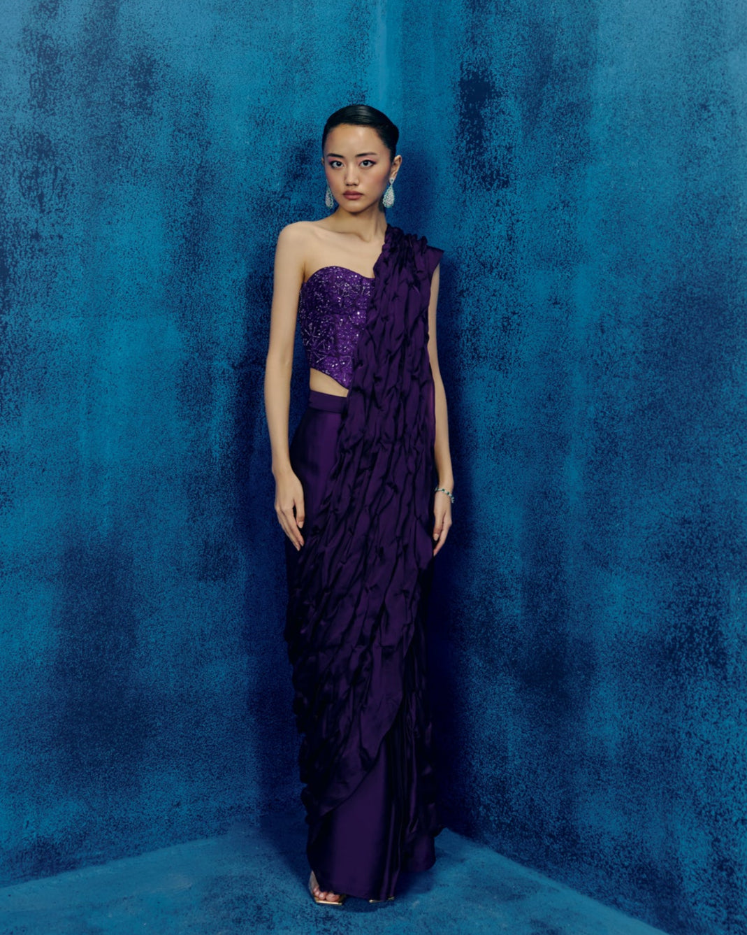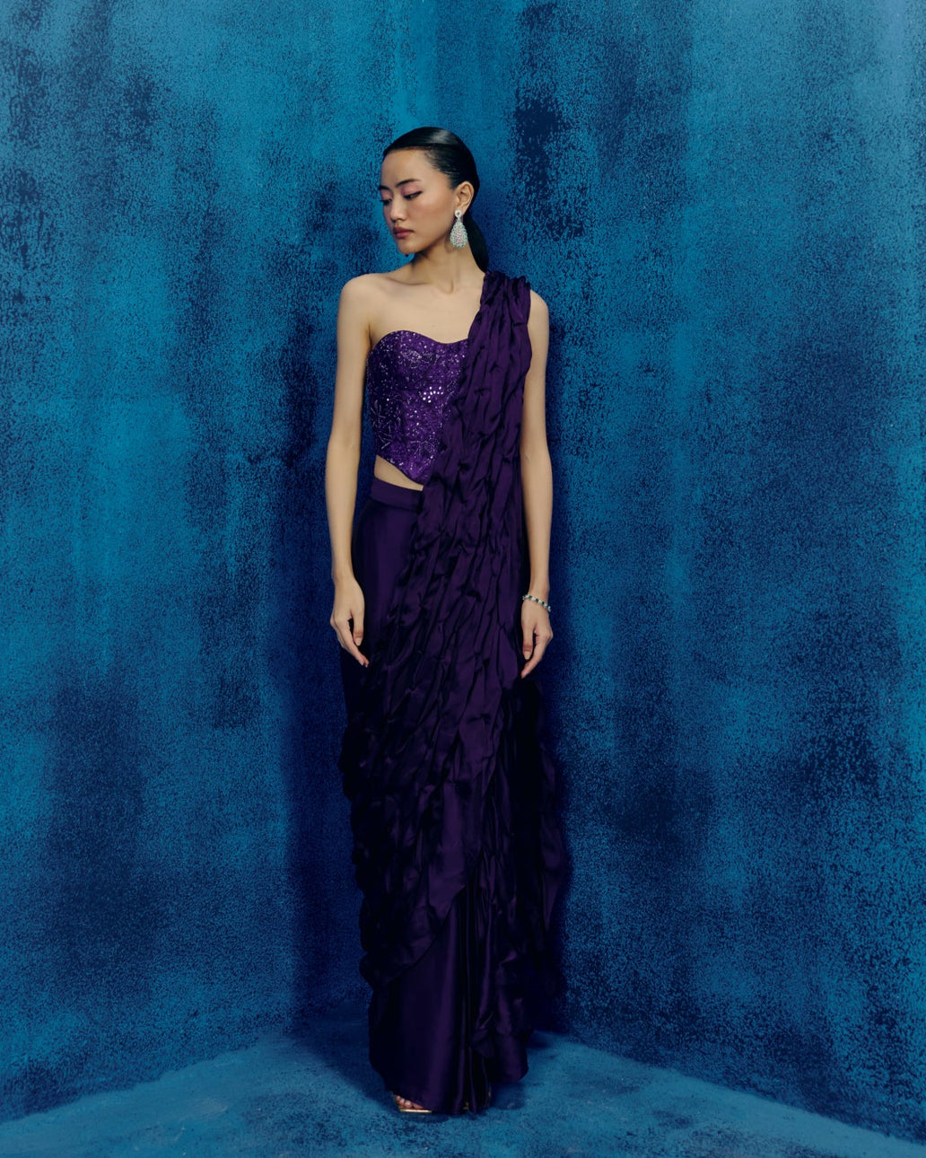 TONAL GEOMETRIC CORSET WITH SMOCKED SAREE