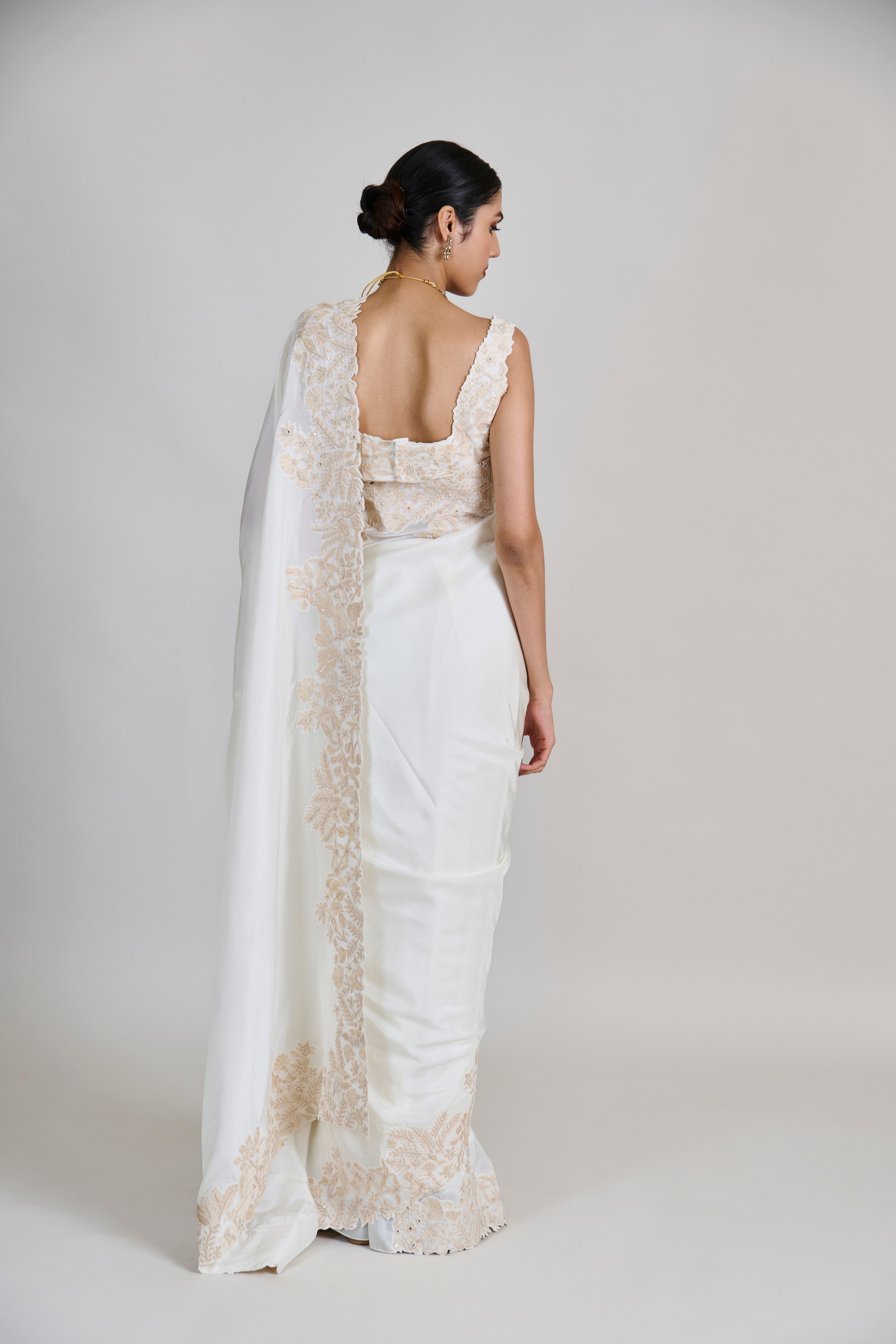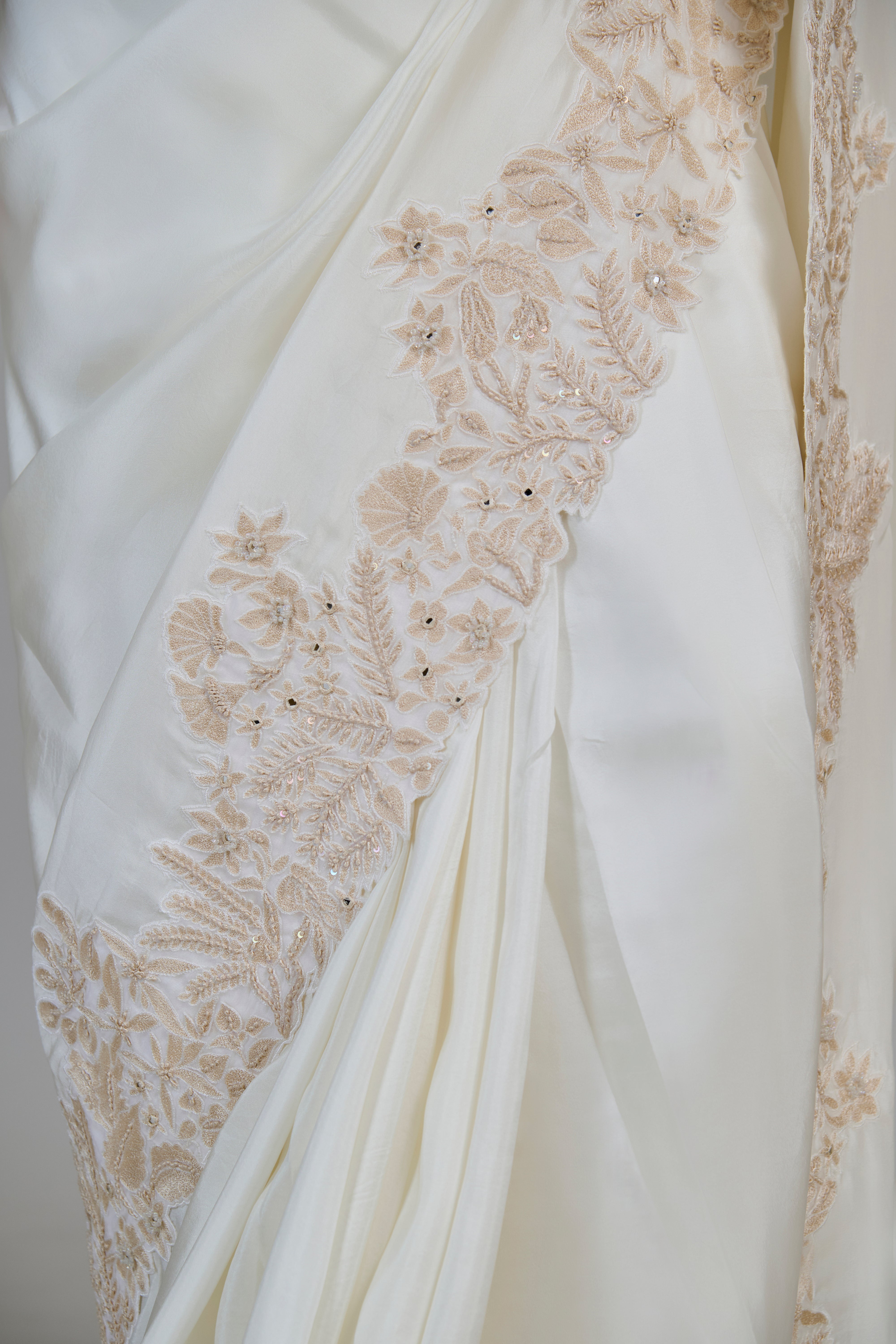 ASSORTED LEAVES BORDER SAREE EMBROIDERED IN GOLD WITH WILDFLOWER BLOUSE