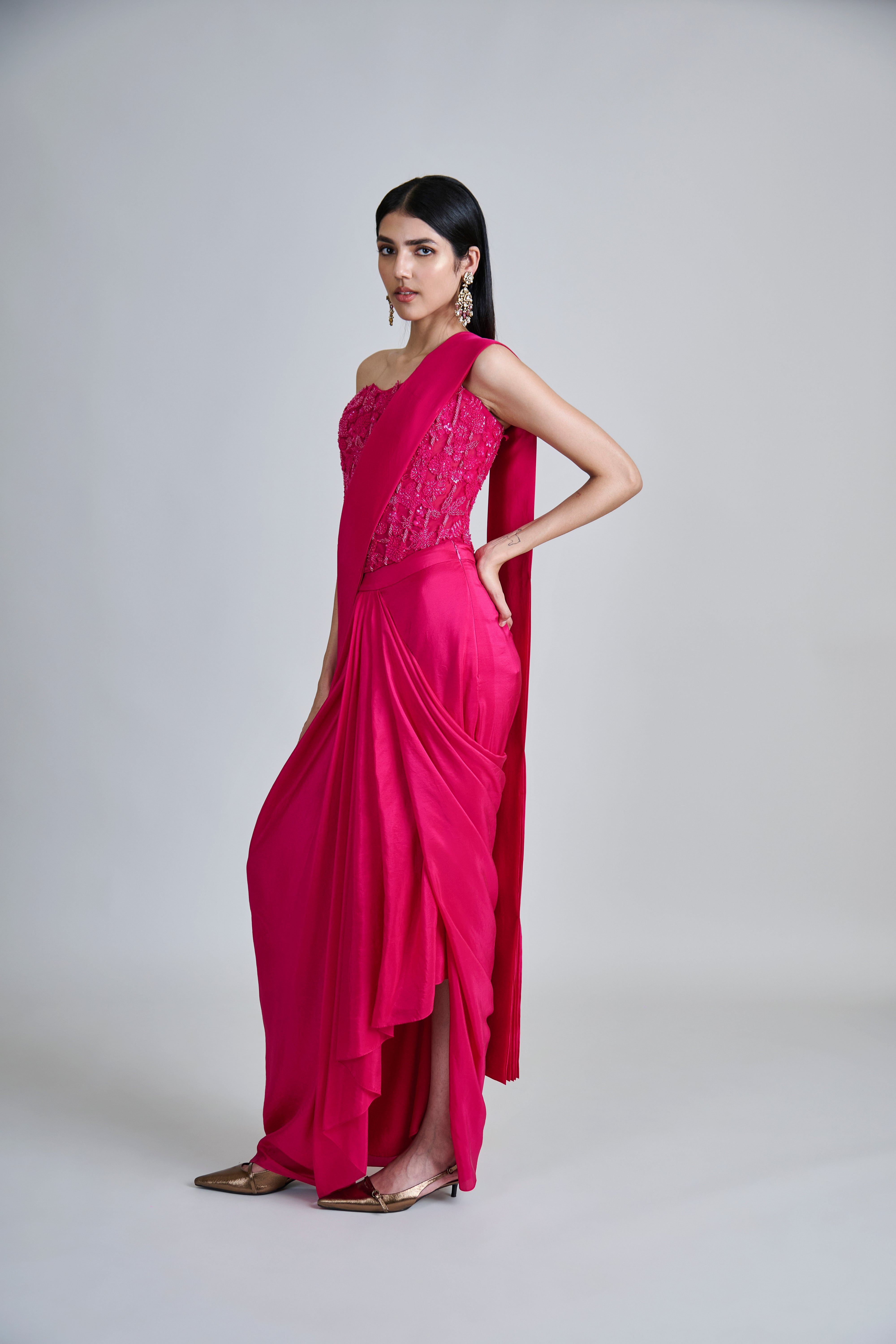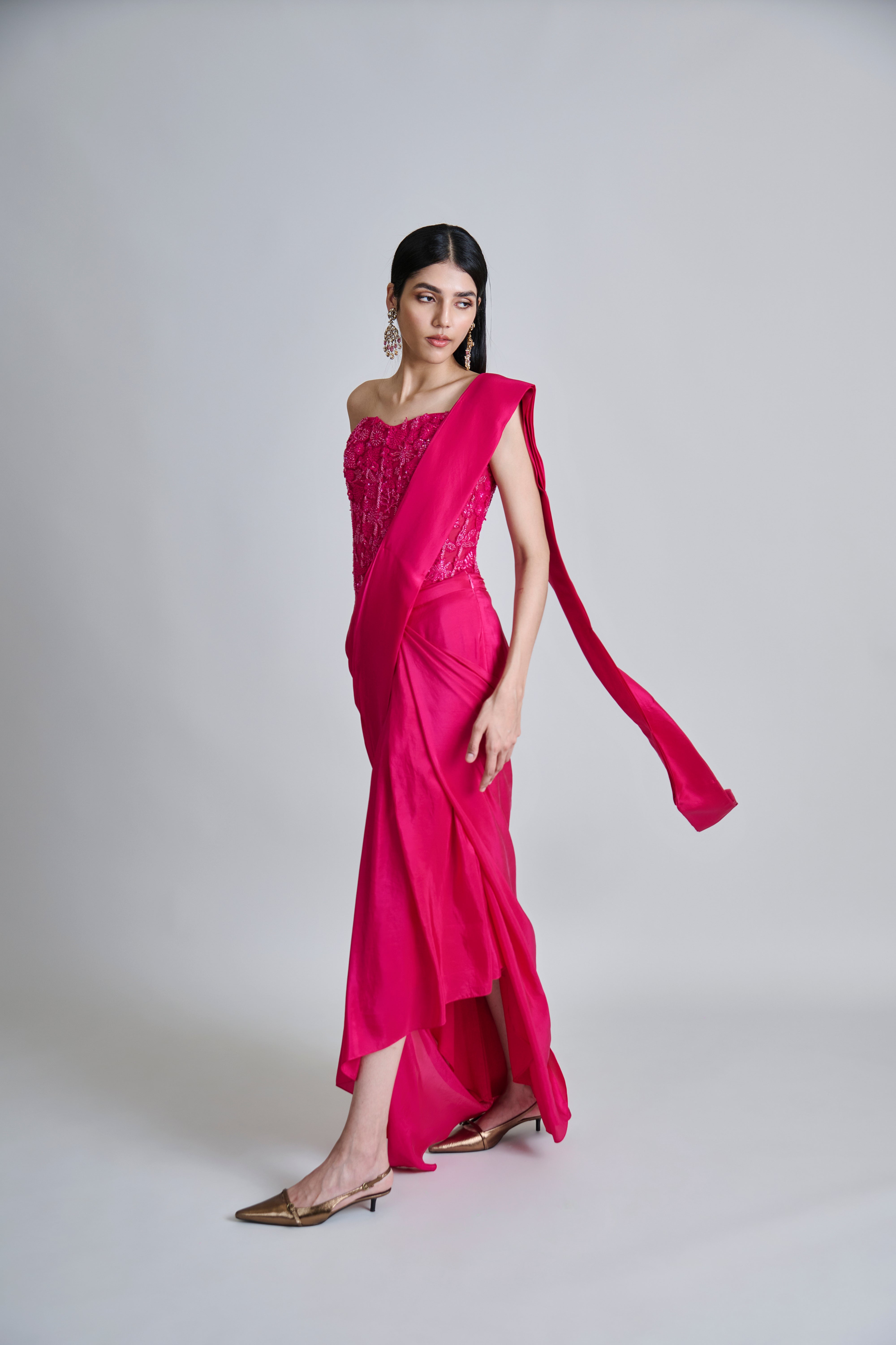 CLUSTERS CORSET PAIRED WITH PLAIN PREDRAPED SAREE