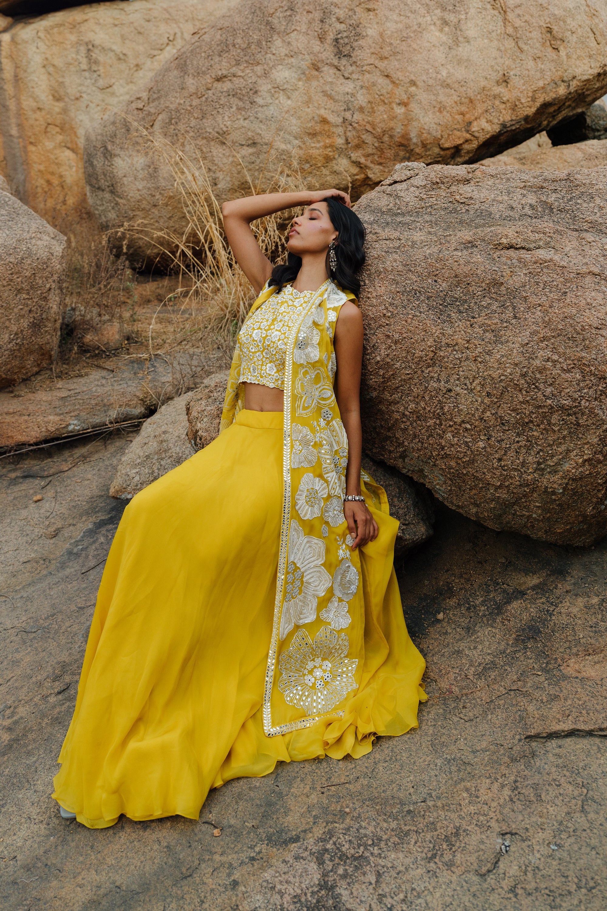 - Fabric : Organza jacket and lehenga, chanderi blouse