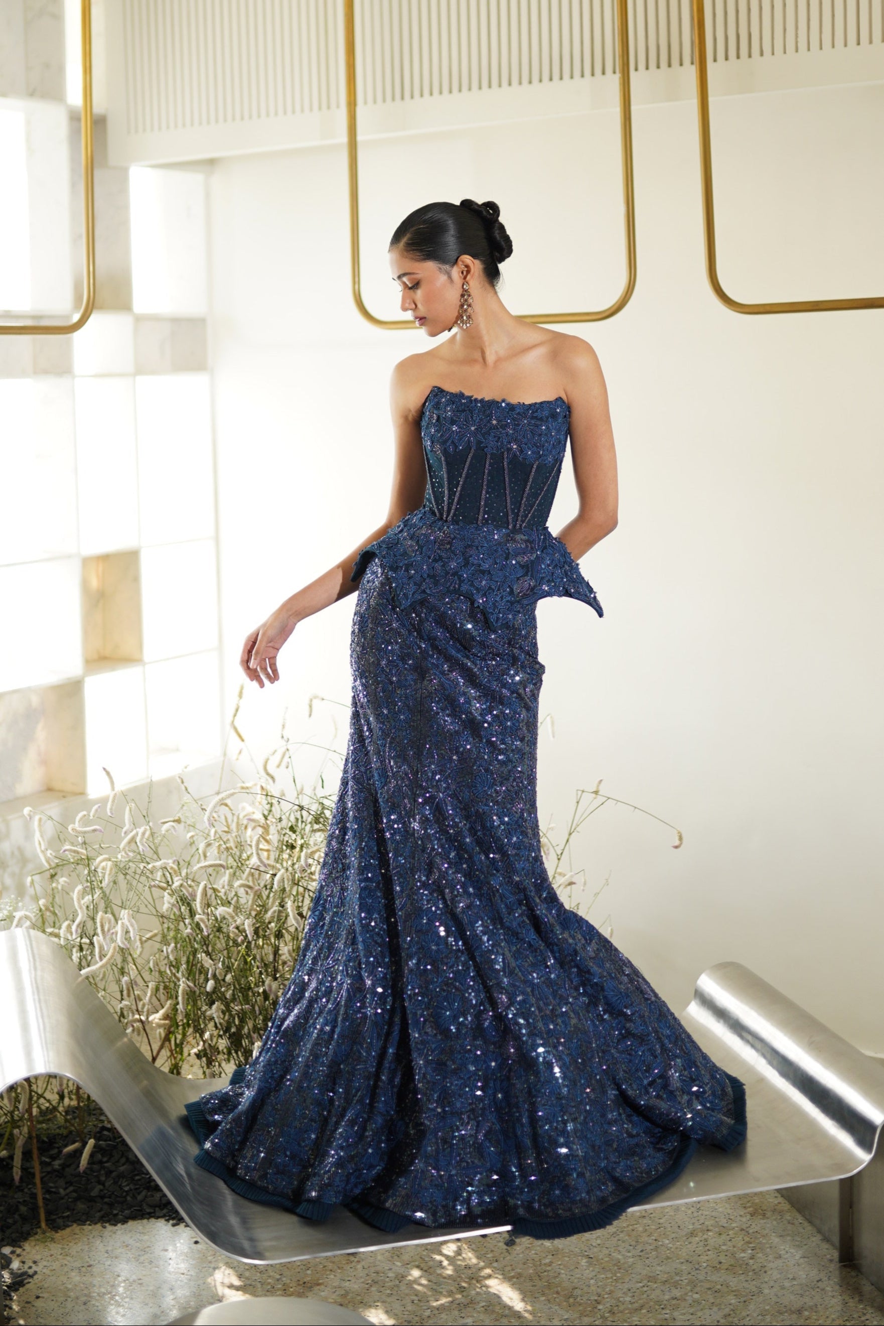 TONAL WILDFLOWER SKIRT WITH SEQUIN BASE AND PEPLUM CORSETÂ