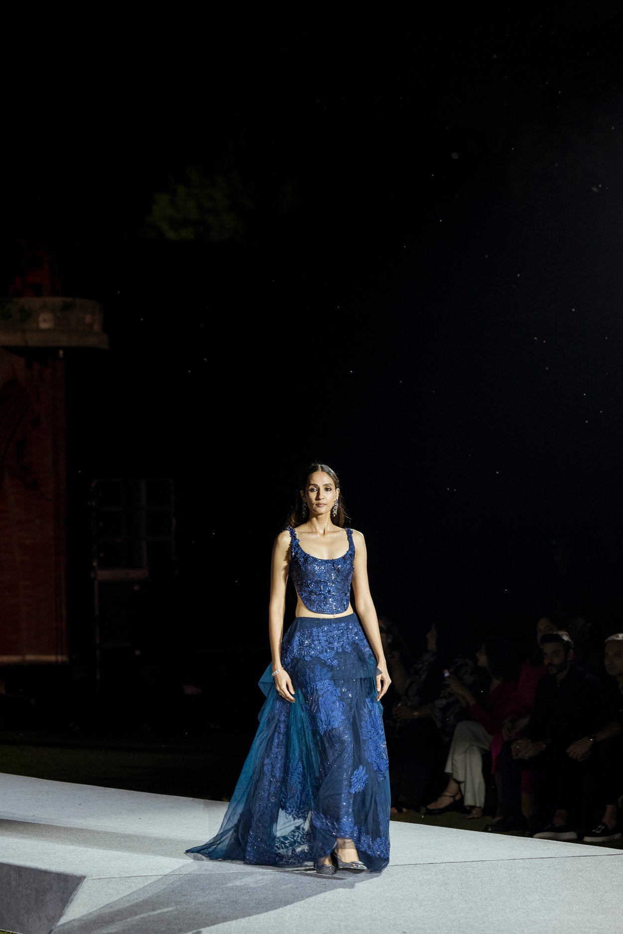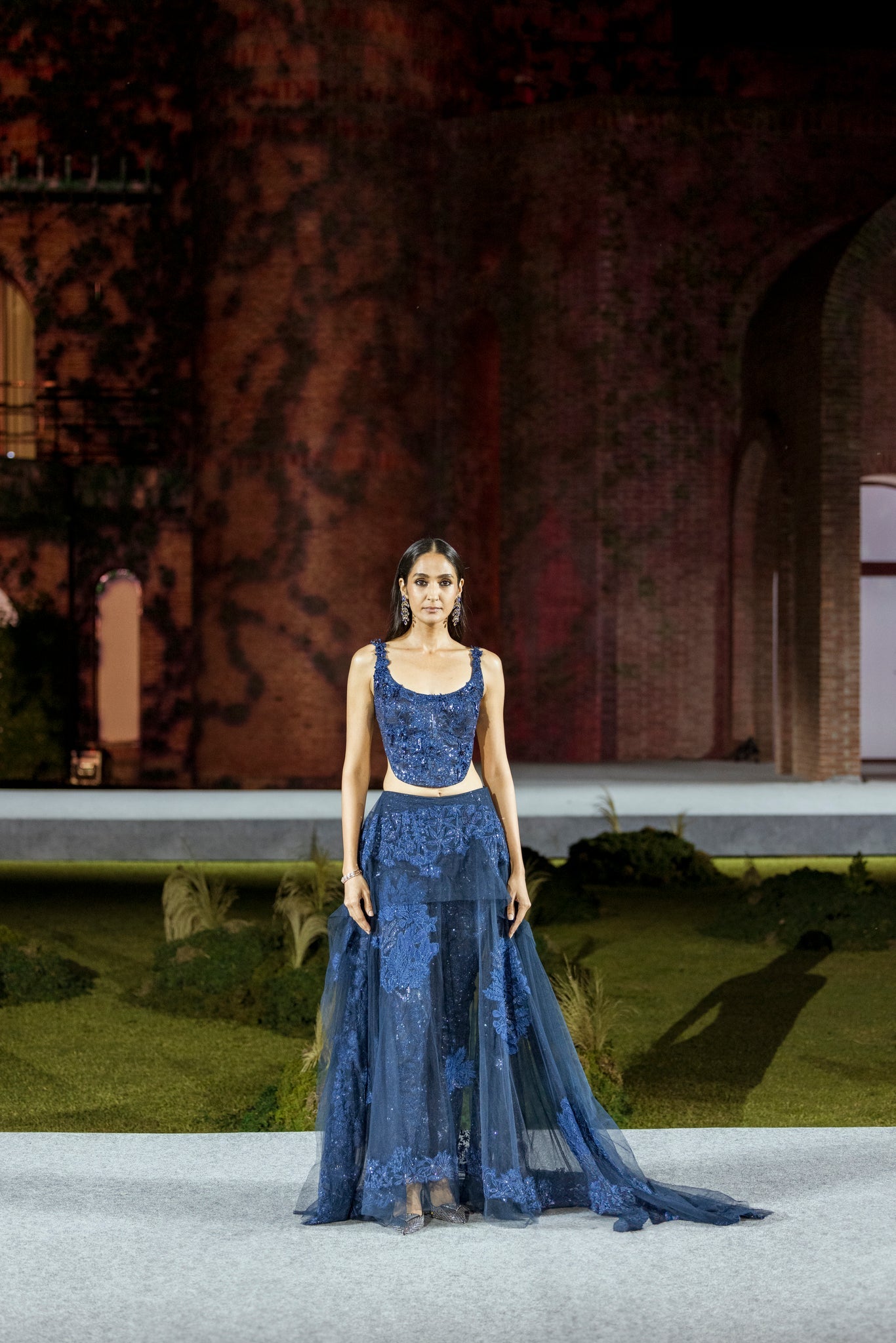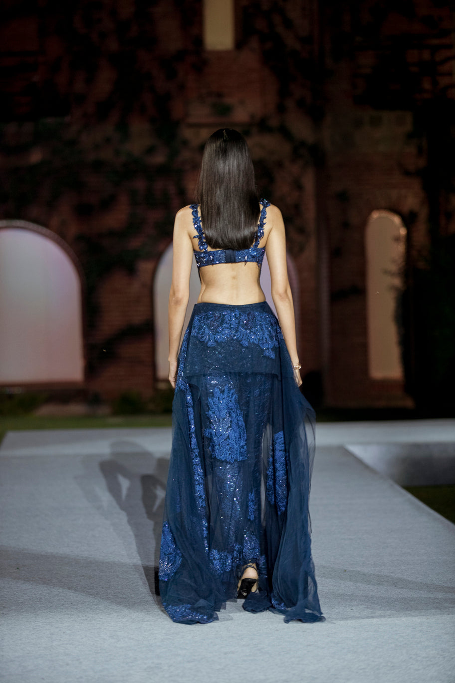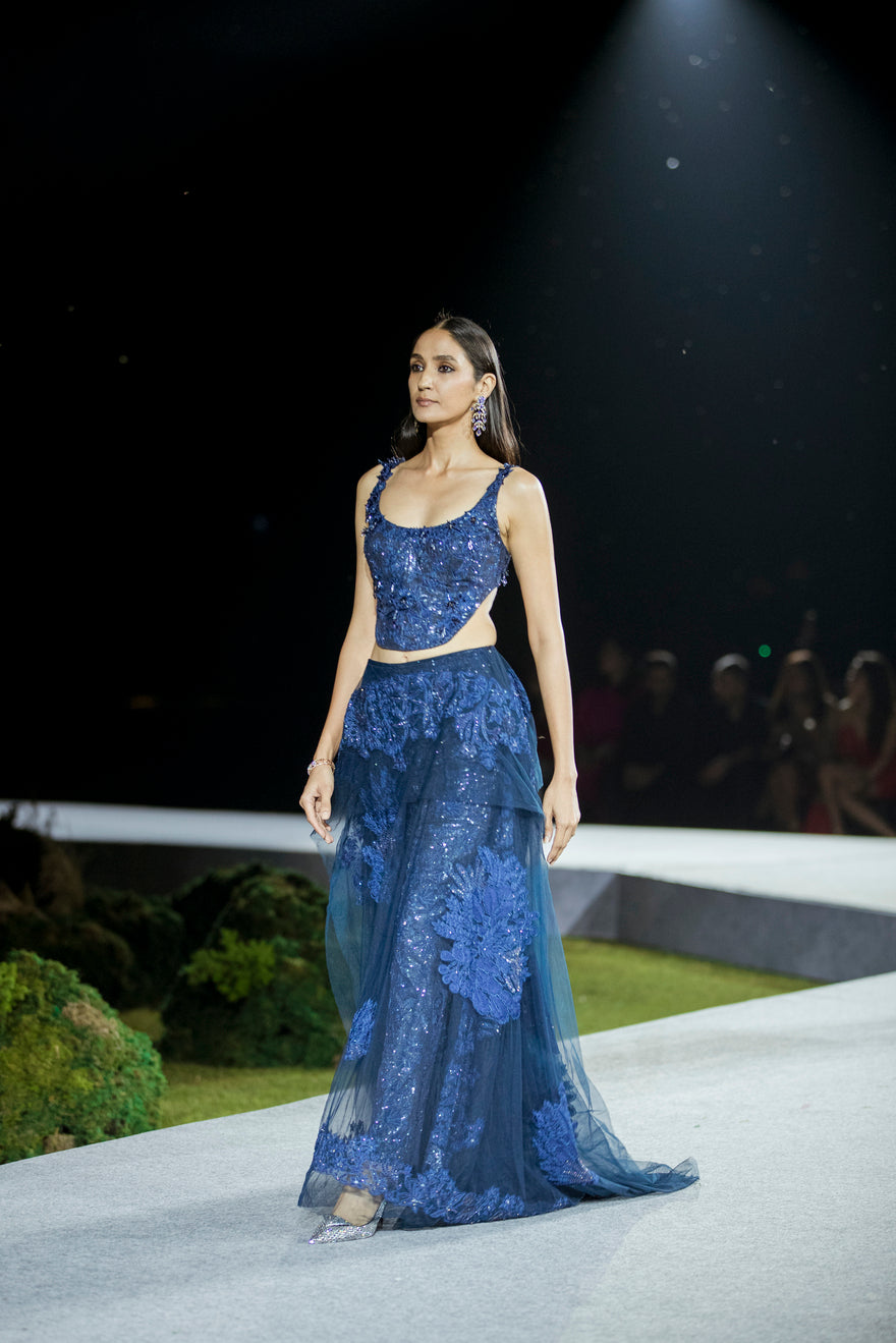 TONAL LEAVES AND FLORAL OVERLAY SEQUIN PANT AND CORSET WITH SEQUIN BASE