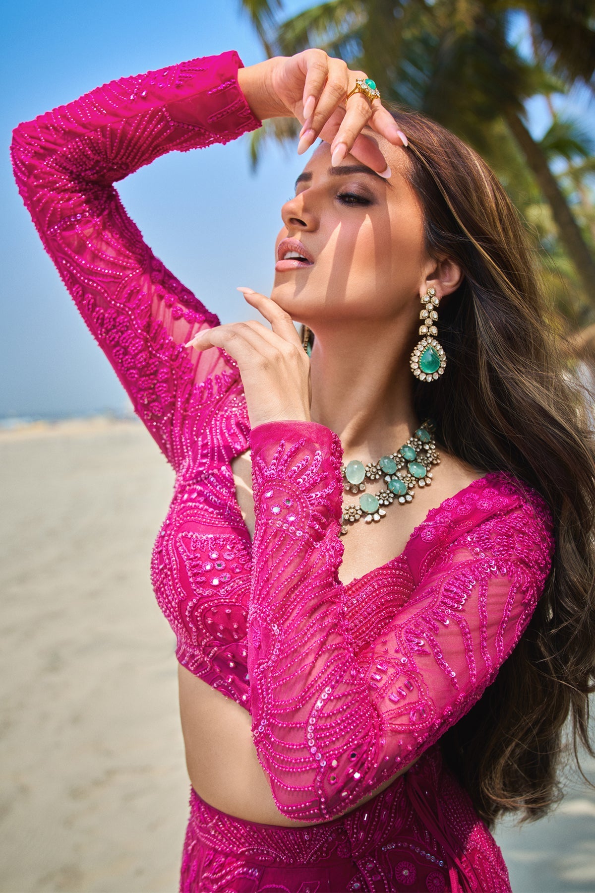 - Fabric :Â Soft tulle, lehenga blouse and dupatta